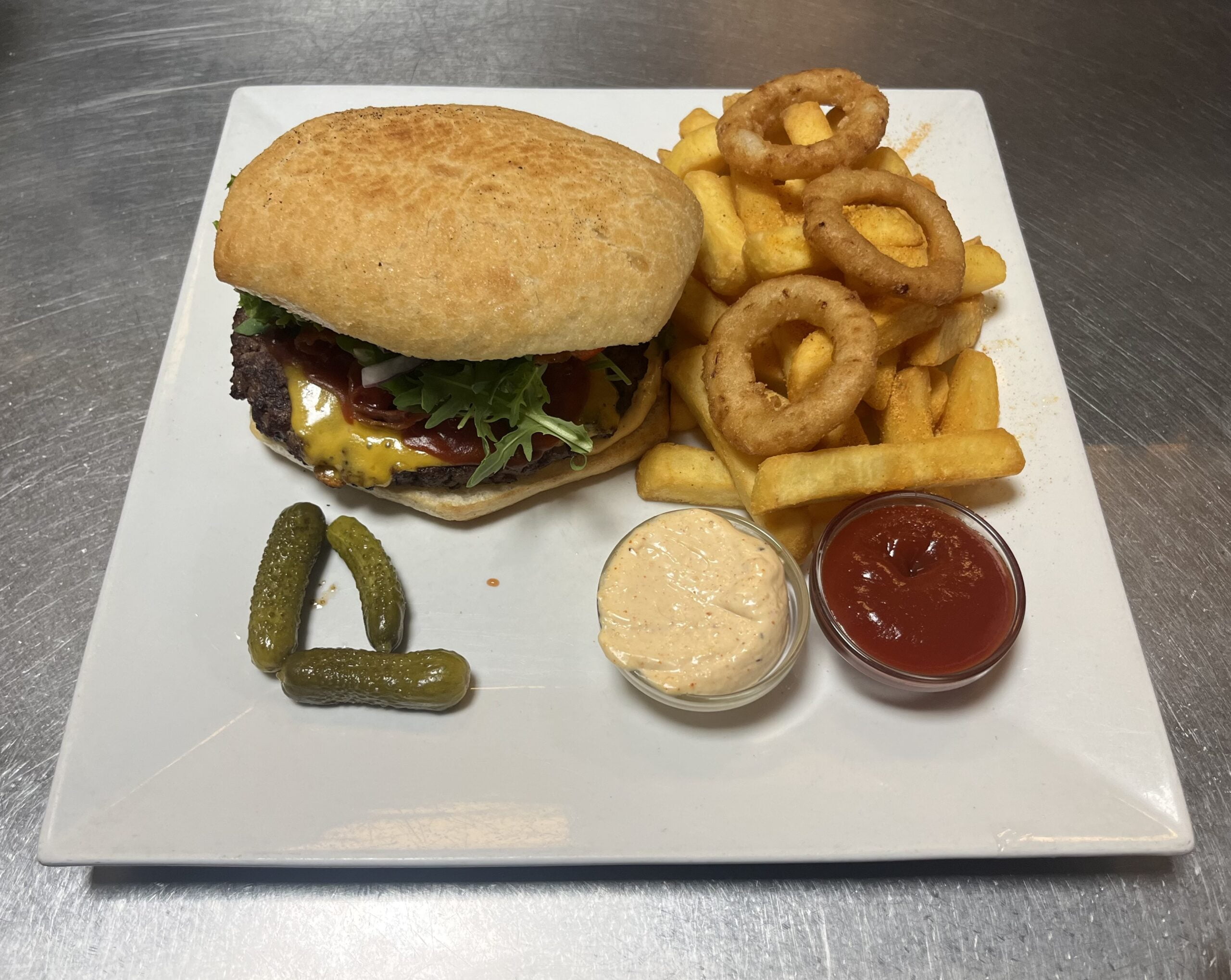 Vores talentfulde kokke sammensætter hver enkelt ret med omhu og bruger kun de bedste ingredienser for at sikre, at hver bid er fyldt med smag og tilfredsstillelse. Uanset om du er til en klassisk sandwich, en saftig burger eller en vegetarisk delikatesse, har vi noget for enhver smag.
